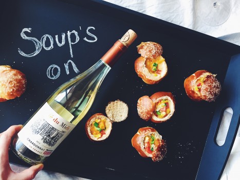Café du Midi Chardonnay “This wine rains kisses in your mouth.” –Insatiable By Gael Greene … Continue reading Corn Chowder Pretzel Soup Shooters + a Super Bowl Chardonnay